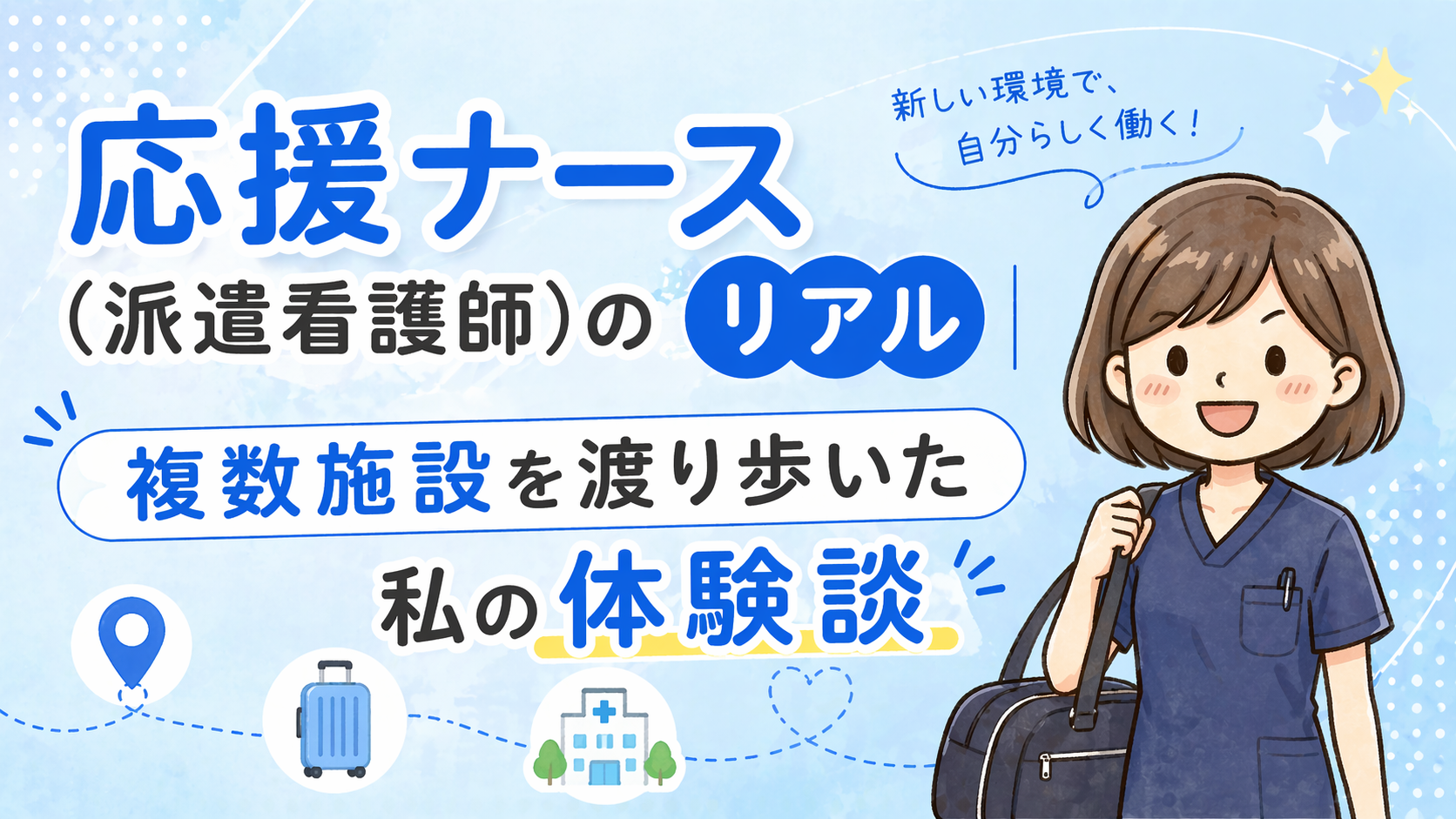 転職を考えているとき、または今の職場に限界を感じているとき、「応援ナース(派遣看護師)」という働き方が目に入ることがあると思います。高収入・全国各地での勤務・短期契約……魅力的に聞こえる一方で、「本当に安心して働けるの?」「孤独じゃない?」「スキルは身につく?」と不安になる気持ちも、よくわかります。